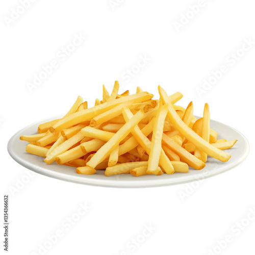 Golden crispy french fries on a white plate, perfectly delicious snack for any time enjoyment on transparent background