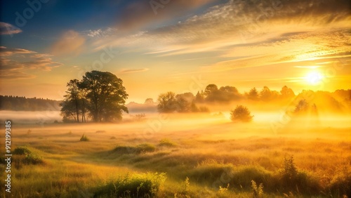 break, dawn, gold, golden light, ray, mist, meadow, sunrise, landscape, field, sky, sunset, nature, tree, grass, cloud, sun, autumn, morning, summer, fog, blue, cloud, tree, horizon, spring, countryside, rural, green