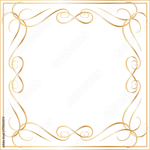 Golden decorative round frame vintage style illustration on transparent background.