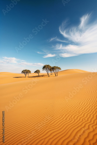 Golden Desert Dunes Under a Clear Sky, created with generative AI technology