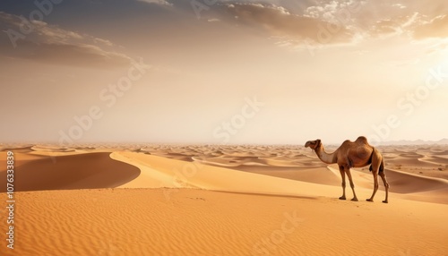 gold, desert, camel, isolated, tranquil, sand, dune, nature, solitude, arid, huge, landscape, stillness, heat, wilderness, horizon, lonely, sun, serene, peaceful, empty, quiet, warm, dry, expansive, golden hour, remote, adventure, beauty