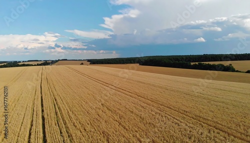 field, gold, wheat, sky, cloud, rural, landscape, summer, horizon, aerial, huge, crop, farmland, nature, daylight, wide, panoramic, agriculture, yellow, brown, light, blue, green, tree, forest, sunny, beautiful, empty, calm, peaceful, huge, farm, crop, harvest, grain, barley, mature, drought, texture, pattern, view