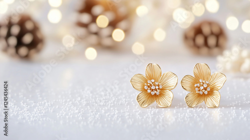 christmas, earring, jewellery, gold, floral, sparkle, festive, holiday season, celebration, gift, winter, ornament, light, christmas lights, decoration, decor, accessory, elegant, glistering, glamour, seasonal, winter landscape, fashion, style, shimmer, glow, warmth, beauty, intricate, delicate, craftsmanship, artisanal, unique, charming, timeless, joy, happiness, merry christmas, new year
