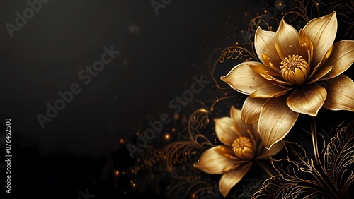 golden flowers on black background