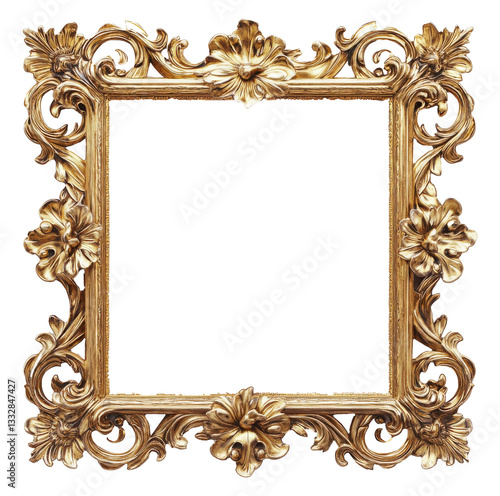 gold, frame, square, decor, elegant, floral, border, empty, space, isolated, transparent