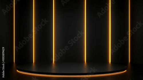 "Golden Glow and Black Stage: A Modern and Simple Background with an Empty Podium Under the Spotlight"