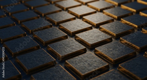 Golden Grid Pattern Texture - Abstract of dark square tiles with gold borders, creating a grid pattern. Modern and elegant design