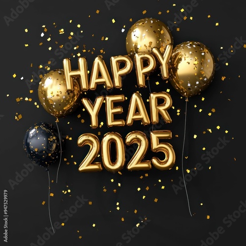 new year, 2025, gold, balloon, ai, illustration, confetti, celebration, holiday, happy, gold, decoration, festive, background, typography