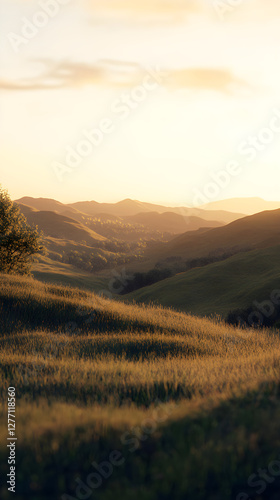 Golden Horizon: Captivating Landscape of Rolling Hills at Sunset with Serene Natural Tones