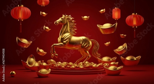 gold, horse, statue, red, lantern, gold, wealth, fortune, chinese, new, year, festive, decoration, lucky, ornament, cultural, symbol, tradition, oriental, celebration, auspicious, money, blessing, artistic, sculpture, decorative, festivity, holiday, rich, opulent, bright, high-coloured, colourful, design, element, festival, decor, wealthy, abundance, good, luck, culture, new year