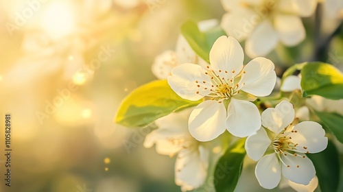 spring, blossom, flower, bloom, white, flower petals, sunlight, sunshine, sun, light, bright, nature, floral, botany, plant, spring flower, delicate, beautiful, pretty, fresh, vibrant, soft, gentle, serene, peaceful, background, wallpaper, image, photo, macro, closeup, detail, texture, fruit farm, garden, tree, tree branch, leaf, green, white flower, blossoming, springtime, awakening, growth, new life, purity, innocence, hope