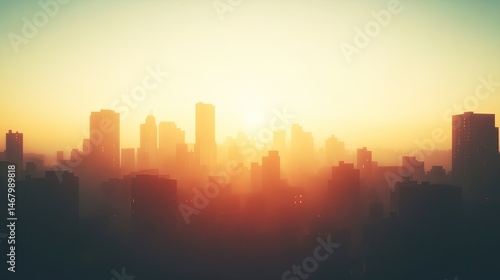 city, city landscape, skyline, sunset, sunrise, urban, building, architecture, silhouette, dawn, dusk, orange, yellow, gold, light, fog, haze, modern, abstract, background, wallpaper, scene, vista, panoramic, view, downtown, business, finance, travel, tour tourism