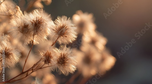 Golden hour illuminates delicate, fluffy seed heads of wildflowers, softly blurred background