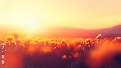Golden hour illuminating a vibrant field of sunflowers creating a warm atmosphere