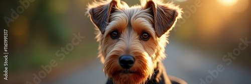 Golden Hour Portrait of a Sweet Welsh Terrier with Expressive Eyes and Fluffy Fur Basking in Warm Sunlight