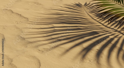 sand, beach, palm, leaf, frond, shadow, sunlight, summer, tropical, nature, texture, pattern, shade, heat, warm, gold, beige, tan, outdoors, vacation, relaxation, serenity, peace, calmness, landscape, detail, closeup, botany, plant, organic, natural, element, background, image