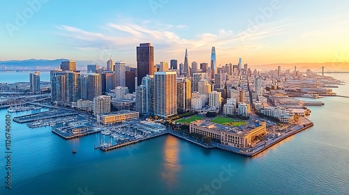 frisco, skyline, city landscape, city, building, skyscraper, bay, waterfront, harbor, boat, marina, sunrise, sunset, golden hour, ocean, water, city view, aerial view, urban, modern, architecture, tower block, metropolis, downtown, california, us, america, travel, tour tourism, landmark, iconic, beautiful, stunning, picturesque, vibrant, dynamic, energy, growth, development, coast, pacific ocean, golden gate bridge, pier, bridge