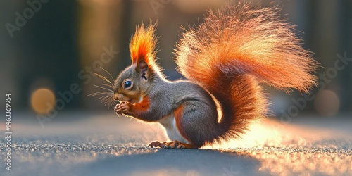 Golden Hour Squirrel: A Stunning Wildlife Portrait of a Red Squirrel Enjoying the Sunset