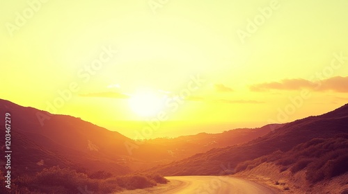 road, sunset, hill, destination, yellow, journey, travel, sun, scenic, landscape, mountain, drive, adventure, path, winding, freedom, way, light, horizon, peaceful, solitude, evening, asphalt, orange, nature, breathtaking, picturesque, exploration, curve, tranquil, ray, calm, inspiring, gold, dusk, serene, sky, beautiful, vibrant, colours, hours, warm, cloud, majestic, awe