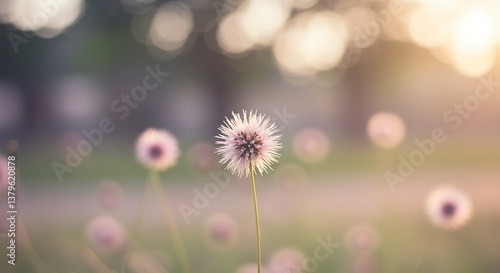 flower, blossom, bloom, blowball, nature, outdoors, field, meadow, grass, green, sunlight, sunset, sunrise, bokeh, soft, gentle, delicate, pastel, light, summer, background, macro, photo, image, flora, botany, plant