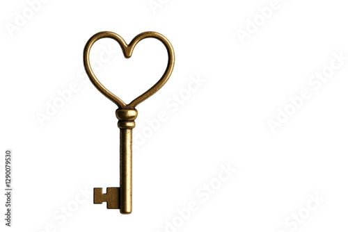 Golden key with a heart shape on it, isolated