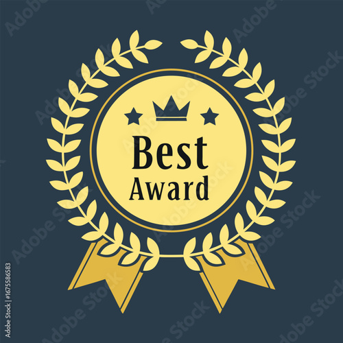 award, laurel wreath, crown, star, victory, achievement, recognition, success, winner, first place, champion, medal, ribbon, badge, emblem, seal, certificate, trophy, excellence, quality, honour, prestigious, celebration, design, graphic, illustration, vector, symbol, icon, vintage, retro, classic, formal, elegant, decoration, guarantee, endorsement, premium, gold medal