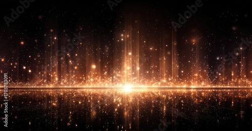 light, gold, streak, dark, surface, particle, sparkle, glow, illumination, glistering, bright, energy, abstract, modern, dynamic, motion, texture, shimmering, radiant, cosmic, futuristic, elegant, luxury, glamour, background, wallpaper, design, graphic, visual, effect, digital, art, composition, horizon, line, center, illuminated, intense, powerful, mystical, radiance, sparkling, opalescent, dazzling, amber, warm