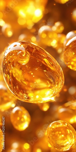 gold, amber, liquid, dripped, sphere, gleam, shine, glow, light, yellow, orange, semitransparent, transparent, glossy, smooth, surface, texture, background, abstract, design, element, beauty, cosmetic, luxury, vibrant, bright, radiant, rich, warm, colours, pattern, visual, art, image, graphic, illustration, style, mood, concept