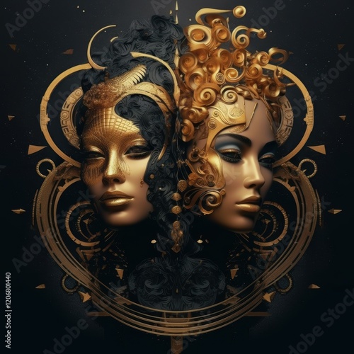 woman, mask, face, gold, portrait, art, fantasy, beauty, eye, hair, gold, woman, make-up, jewellery, fashion, design, style, graphic, illustration, digital, artistic, artwork, abstract, visual, colours, image, photo, fine, artwork, creative, black, dark, shiny, elegant, glamour, luxury, modern, contemporary, expression, intricate, ornate