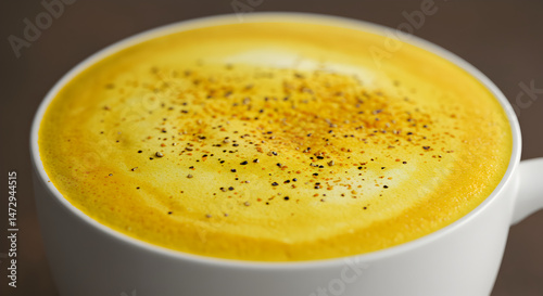 Golden Milk Latte Close Up View With Black Pepper Spice Topping