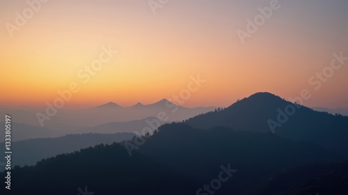 mountain, peak, sunset, hazy, dreamy, golden light, misty, aethereal, scenic, landscape, twilight, panoramic, serene, highland, nature, artistic, wilderness, atmospheric, majestic, cloud, horizon, breathtaking, peaceful, fantasy, cinematic