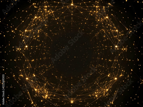Golden Network Glows on a Dark Background, Creating an Abstract Digital Illustration