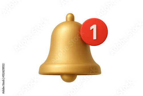 notification, bell, 1, three-dimensional, communication, alert, reminder, online, cyberspace, icon, symbol, update, information, important, urgent, attention, gold, red, number, single, isolated, simple, modern, design, graphic, element