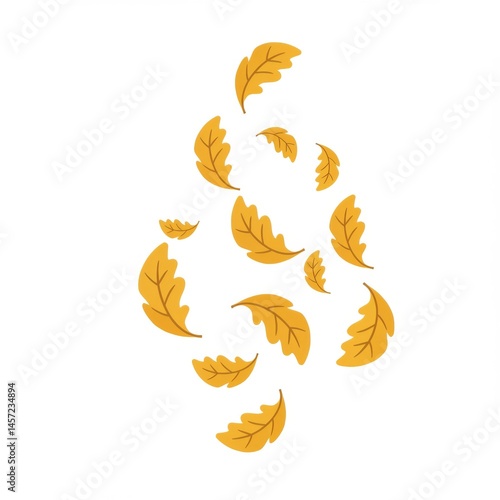 leaf, autumn, fall, yellow, gold, orange, brown, oak, foliage, nature, seasonal, whimsical, illustration, design, element, graphic, artwork, abstract, pattern, texture, background, white, floating, swirling, motion, movement, wind, air, isolated, digital, art, clip, decor, decoration, botanical, artistic, creative, image, picture, aesthetic, pretty, cute