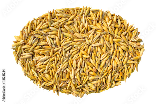 Golden oat grains: the basis of a healthy breakfast and healthy recipes. Isolation on a transparent background.