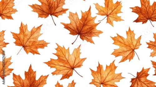 Golden orange-brown color of maple tree leaves in autumn, winter tree canopy foliage isolated against flat background