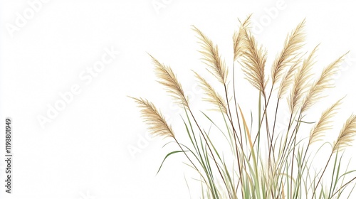 Golden Pampas Grass on White: Botanical Illustration of Ornamental Grass Plumes, Nature Art, Floral Design for Autumn Vibes