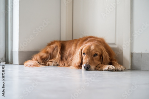 pet, floor, animal, dog, lonely, family, golden retriever, cute, lying down, indoor, boredom