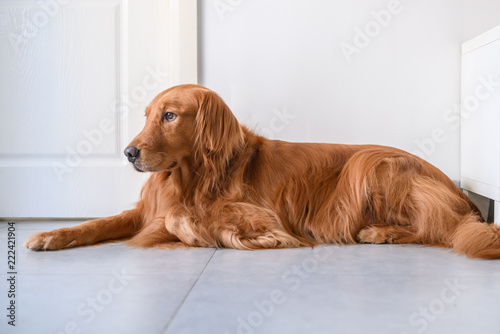mammal, pet, purebred dog, animal, dog, golden retriever, family, cute, fur, nobody, facial, lying, indoor, funny