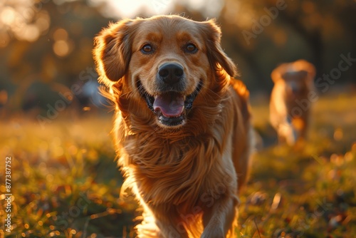 golden retriever, running, playful, meadow, sunlit, autumn color, background, warm, sunny, autumn, afternoon, smiling, happy, grass, outdoors, nature, pet, animal, park, field, sunlight, joy, cheerful, canino, fur, fluffy, adorable, sunset, light, warm tones, scenery, leaf, golden hour, lens flare, bokeh, adventure, friendly, companionship, fun, portrait, motion, activity, vibrant, seasonal
