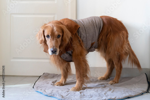 pet, alone, animal, dog, family, golden retriever, cute, indoor, clothes, funny