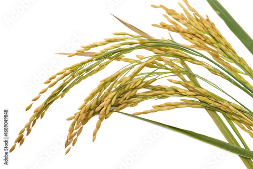 Golden rice stalks with green leaves isolated on a transparent background paddy grain 1