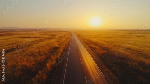 highway, sunset, travel, solitude, journey, landscape, gold, horizon, adventure, nature, road, outdoors, freedom, exploration, beauty, scene, empty, sky, path, terrain, distance, serenity, escape, immensity, environment