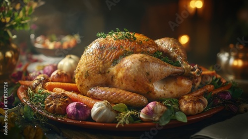 Golden Roasted Thanksgiving Turkey with Fresh Vegetables and Herbs