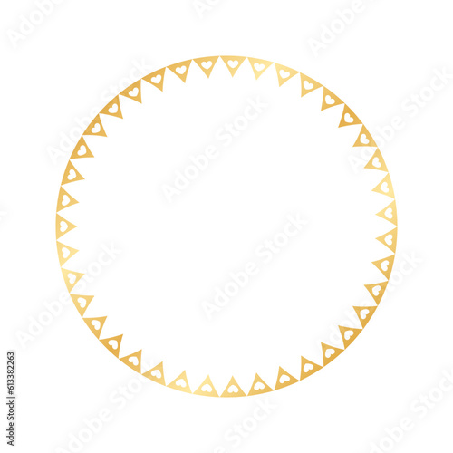 Golden round frame made with heart pattern. Gold Valentines Day Border Template, elegant wedding invitation card vector illustration
