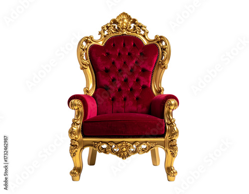 Golden Royal Throne with Velvet Cushions and Ornate Details