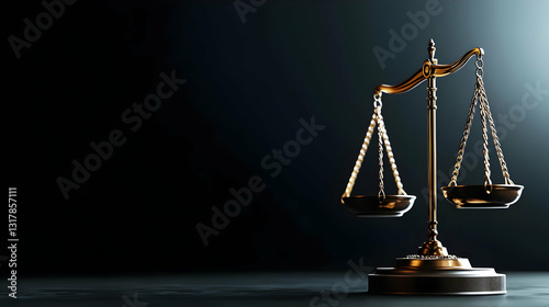 Golden Scales Of Justice Balancing Legal Right And Wrong In Dark Courtroom Setting