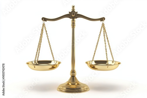 Golden scales of justice isolated on white background on transparent background