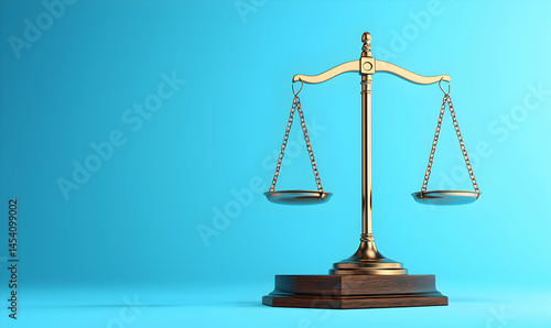 Golden scales of justice stand against a vibrant blue backdrop. A symbol of legal balance and fairness in a clean composition