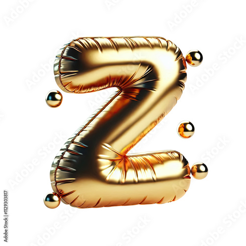 Golden shiny foil balloon alphabet letter Z, isolated on transparent cutout PNG